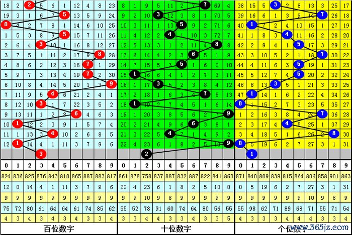 百位分析:最近7期百位区分开出奖号:9、4、3、6、1、4、1,百位振幅为8个点位,本期看好该位号码上涨,注目号码3。